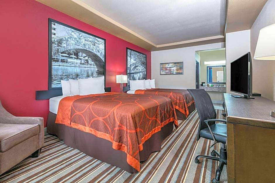 Choose from a selection of comfortable room types to suit your needs at . Whether you're traveling with a group or on a solo adventure, you can opt for a Deluxe Room with Queen Beds, a cozy 1 King Bed room, or even a spacious Studio Suite with 1 King Bed. Each room is designed to accommodate adults and 1 child, providing a cozy retreat after a day of exploring the city.